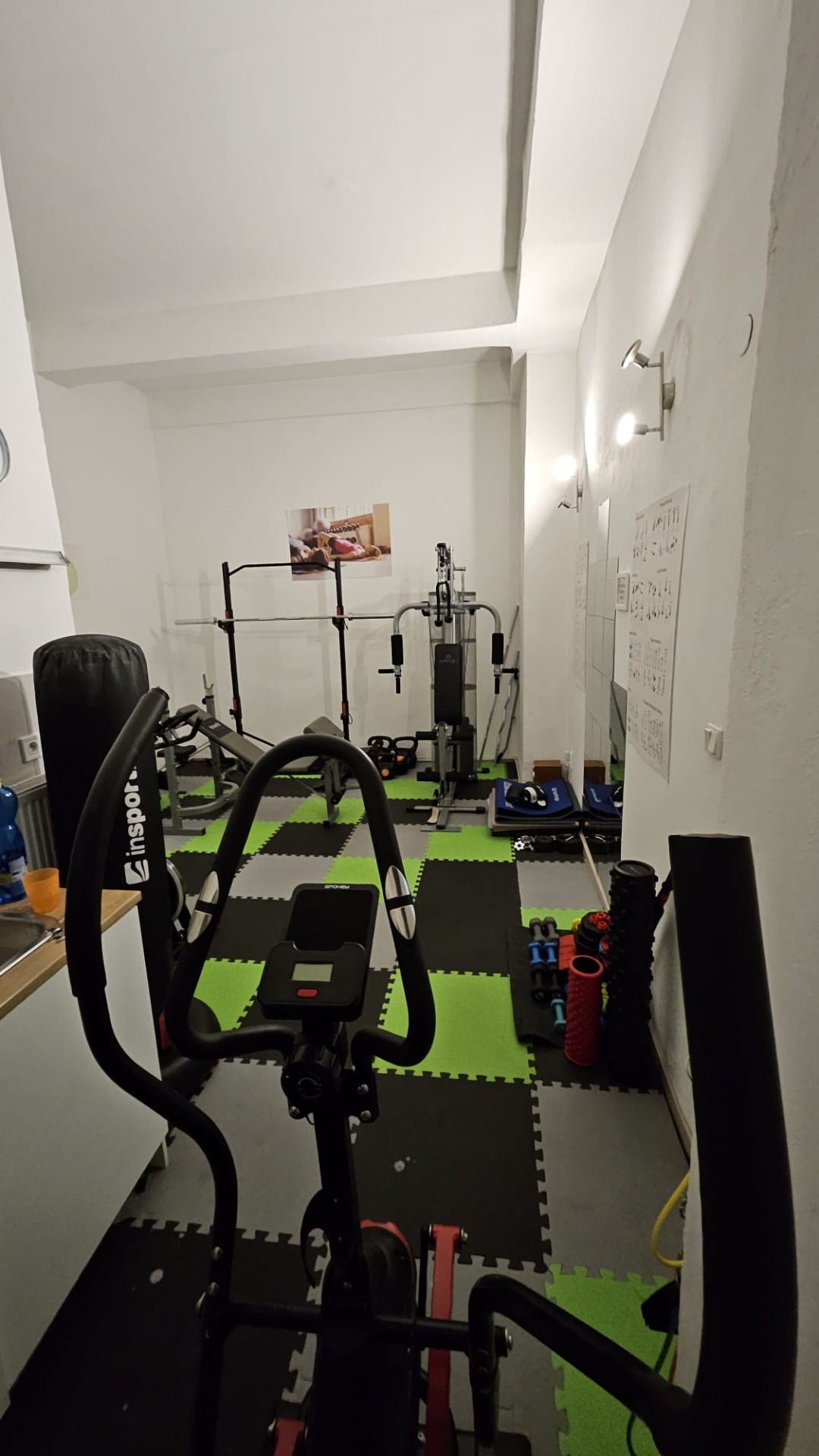- Kardio stroje, činky, Fit lopty, podložky, naťahovacie gumy a laná, lavičky, tyče a multifunkčnú vežu.